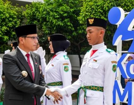 Pernyataan pengukuhan disampaikan oleh Wali Kota, diiringi penyematan Lencana dan Kendit Latihan Kepemimpinan Perintis Pemuda kepada Pemimpin Upacara secara simbolis.